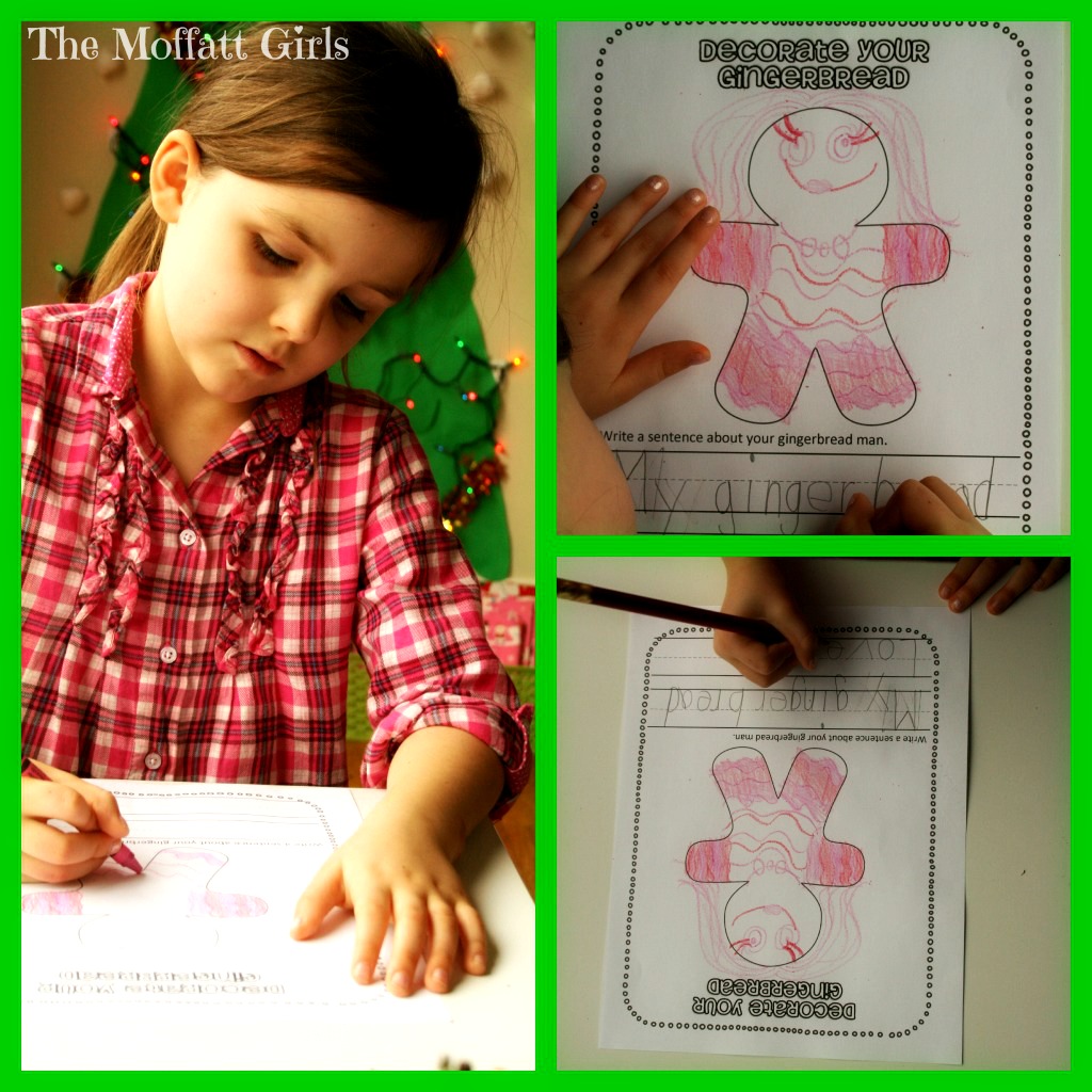 Our Gingerbread packet also includes a piece to decorate your gingerbread and write a sentence describing your gingerbread. Obviously this Gingerbread LOVES pink…