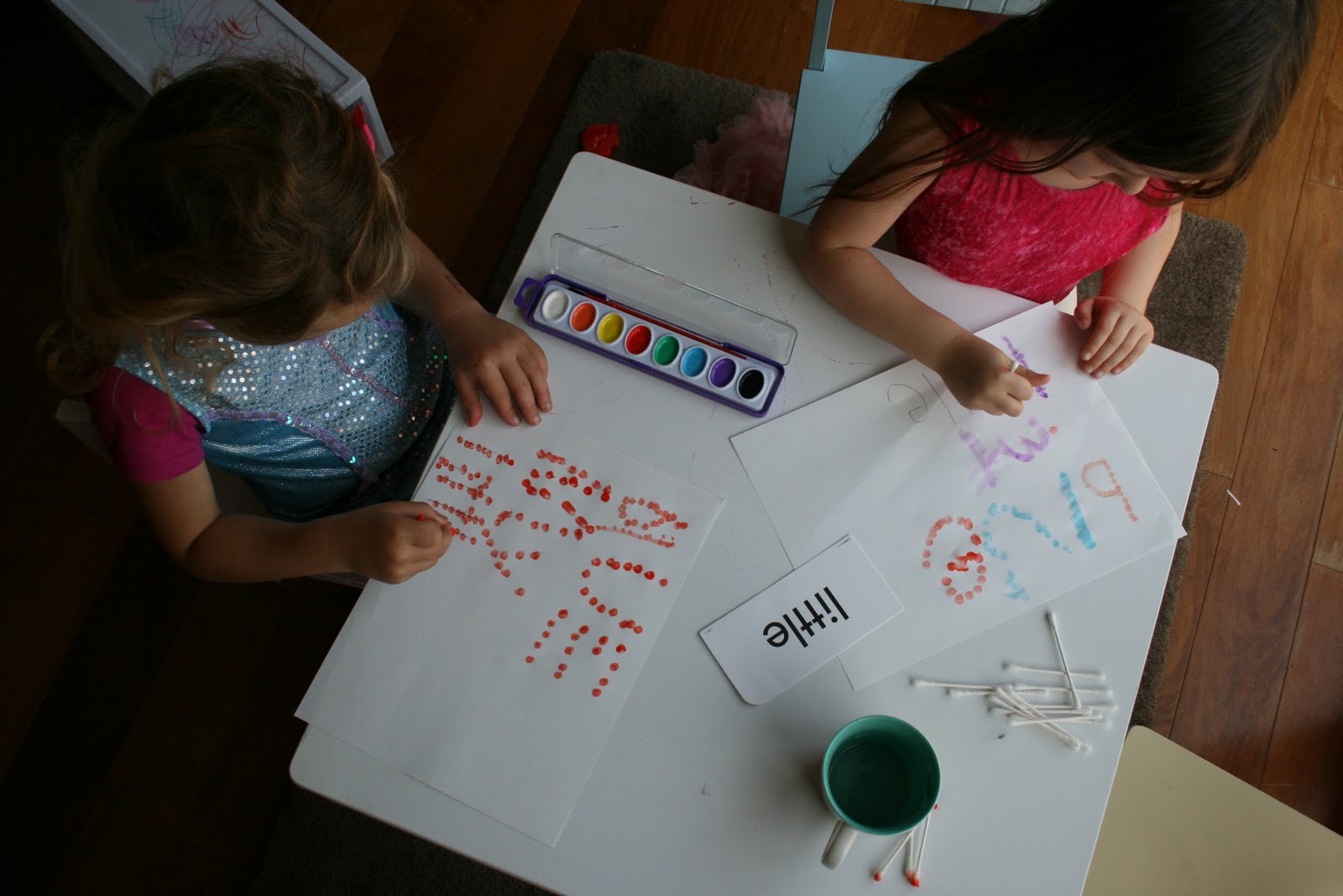 Phonics: The girls worked on the word family flowers and Sophia liked to help rearrange them:)