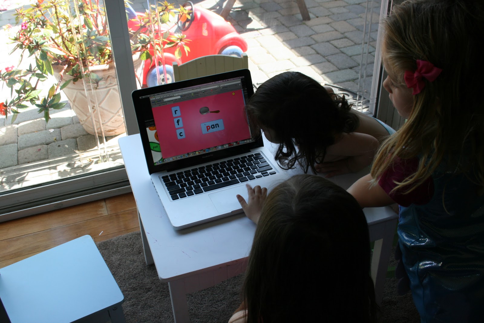 Phonics: The girls had fun with this flower game! They picked a flower, read the word, and added it to their garden.