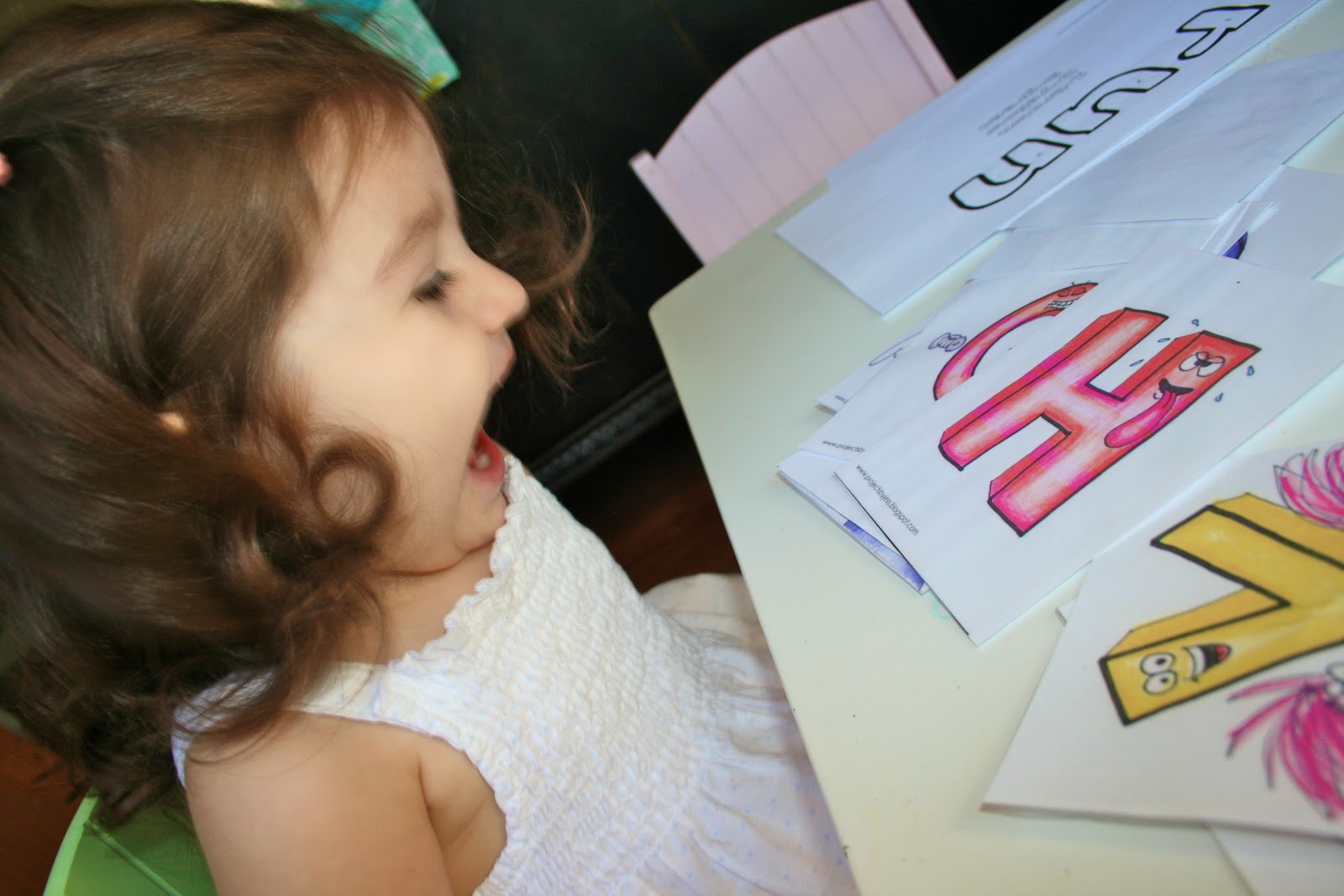 Here she is SCREAMING out the sounds of each letter. I totally attribute this to Letter Factory