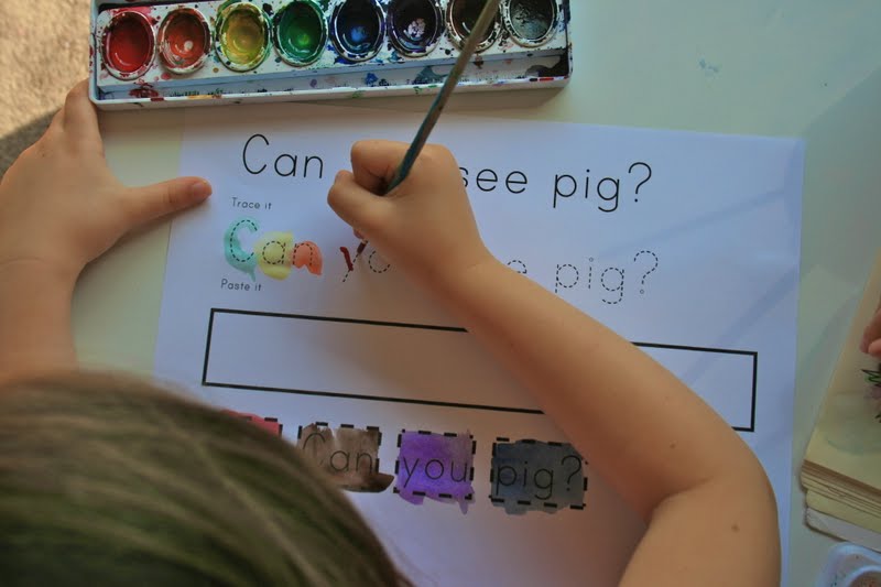 We PAINTED our Read it, Trace it, Past it pages! Audrey really enjoyed this part and wanted to several in one day.