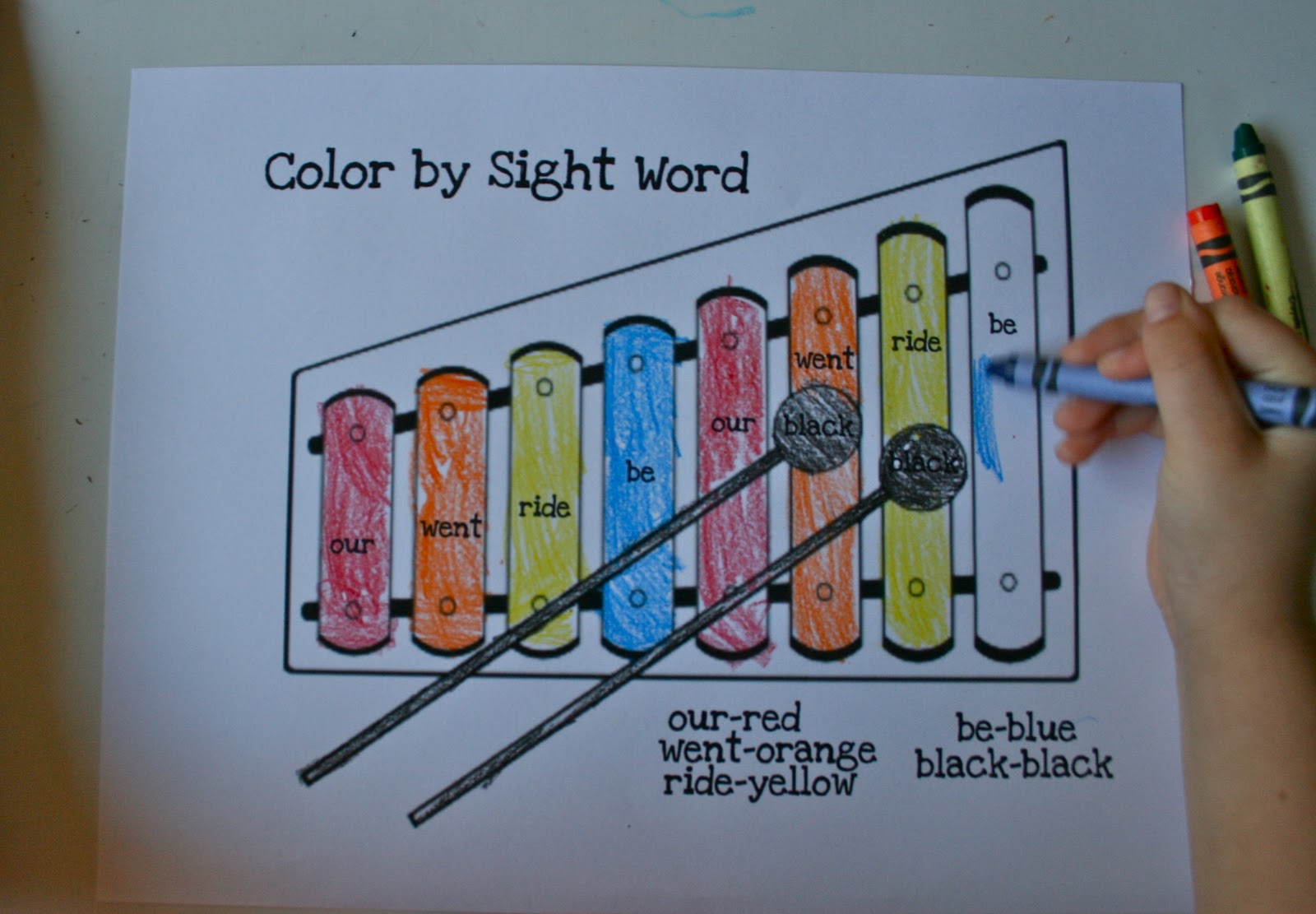 Audrey colored her Color-by-Number Sight Words. We laminated them and put them in our pocket chart with last weeks words to review…