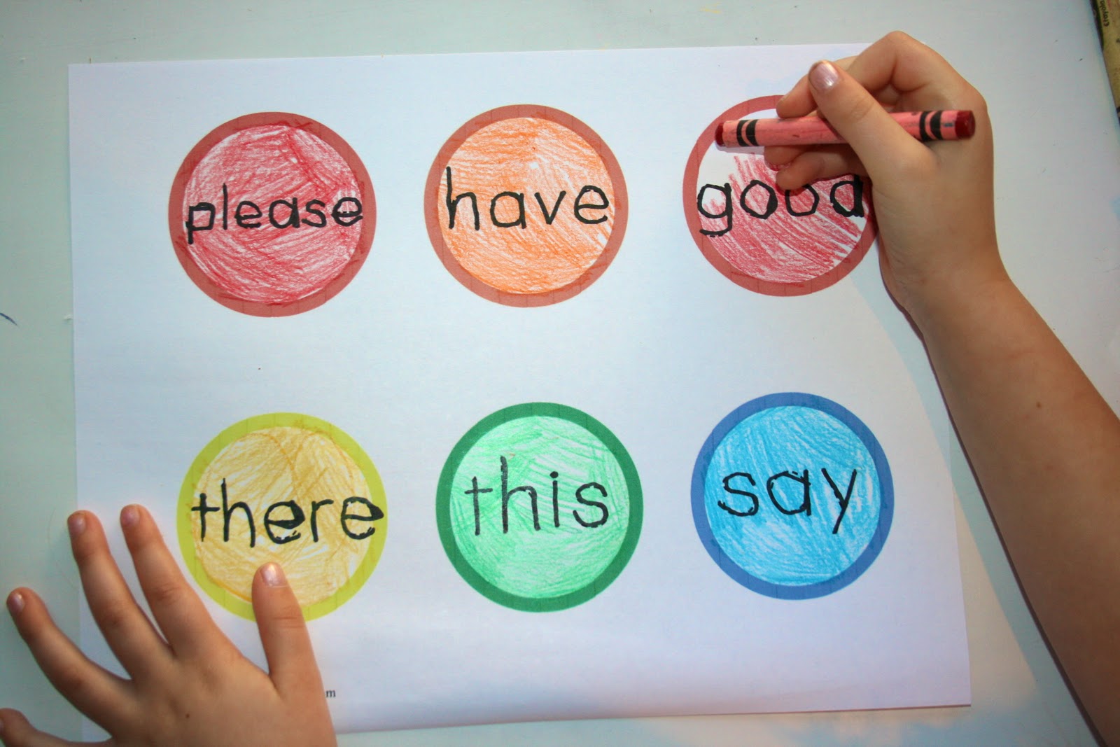 This game can be played a couple of different times when going through the lesson. The most important thing is that the child is actually reading the word and not just coloring the word. Audrey likes this game a lot!!