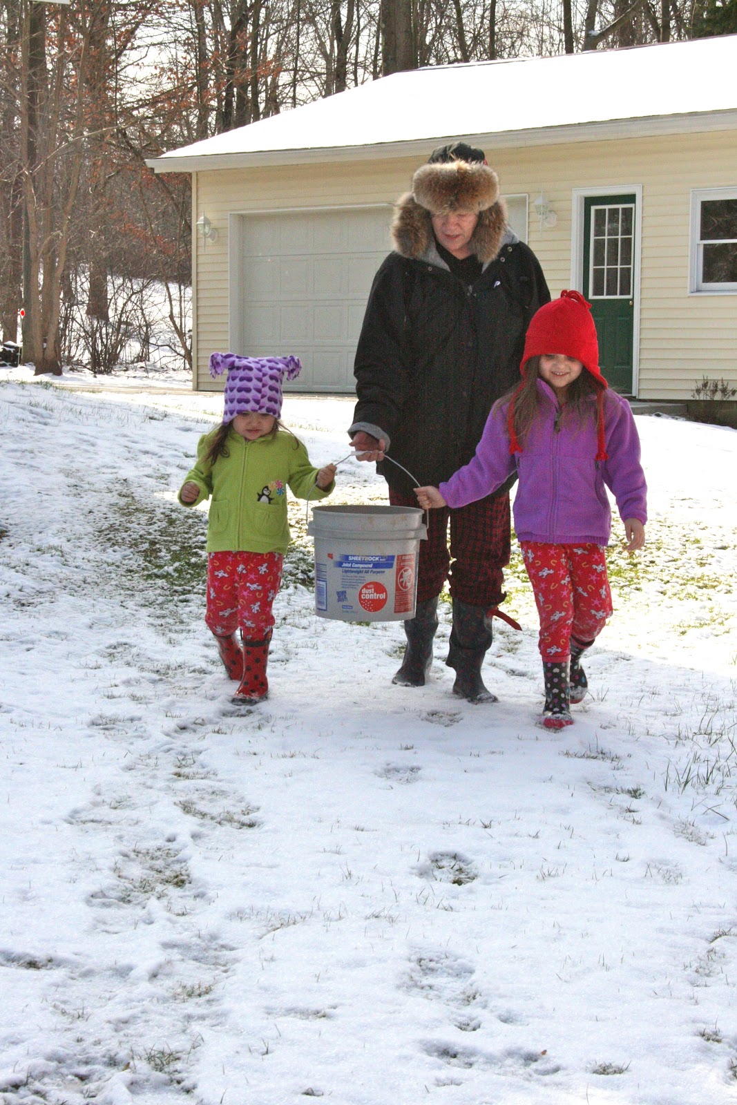 Each day the girls had a special job of taking the food (corn and apples) out to the deer and they LOVED it! At 5 o’clock the deer would show up for dinner and we could watch them from the window. How cool is that? Totally different than California!